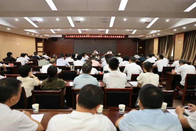 8月4日,在收聽收看了全市醫(yī)療衛(wèi)生機構(gòu)醫(yī)德醫(yī)風(fēng)有關(guān)問題集中整治工作動員部署會后,玉山縣第一時間召開工作會議,貫徹落實會議精神??h委副書記、縣長余洪雷出席并講話,他強調(diào),要深入學(xué)習(xí)貫徹習(xí)近平總書記關(guān)于醫(yī)德醫(yī)風(fēng)建設(shè)的重要論述和考察江西重要講話精神,認(rèn)真落實中央、省、市部署要求,不斷提升醫(yī)療衛(wèi)生領(lǐng)域治理效能,促進全縣衛(wèi)生健康事業(yè)高質(zhì)量發(fā)展。副縣長余選強作工作部署。