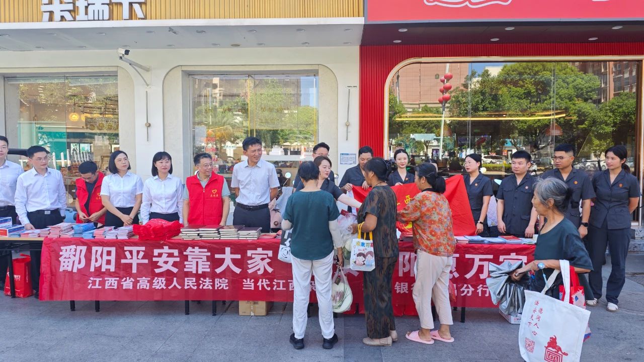 此外,省高院還聯(lián)合當(dāng)代江西雜志社、華夏銀行南昌分行、鄱陽縣人民法院到我縣望湖御景小區(qū)開展“鄱陽平安靠大家,平安鄱陽惠萬家”為主題的普法宣傳活動(dòng),通過張掛橫幅、派發(fā)宣傳手冊、開展法律咨詢等途徑推進(jìn)普法宣傳。活動(dòng)期間,法院干警運(yùn)用淺顯生動(dòng)的語言,結(jié)合法治情景案例向群眾闡釋防范養(yǎng)老詐騙、電信詐騙及生態(tài)環(huán)境保護(hù)等領(lǐng)域的法律知識。本次活動(dòng)共計(jì)發(fā)放宣傳資料900余份,環(huán)保袋300余個(gè),解答各類法律咨詢70余條,切實(shí)增強(qiáng)了群眾共建平安鄱陽的自覺性。
