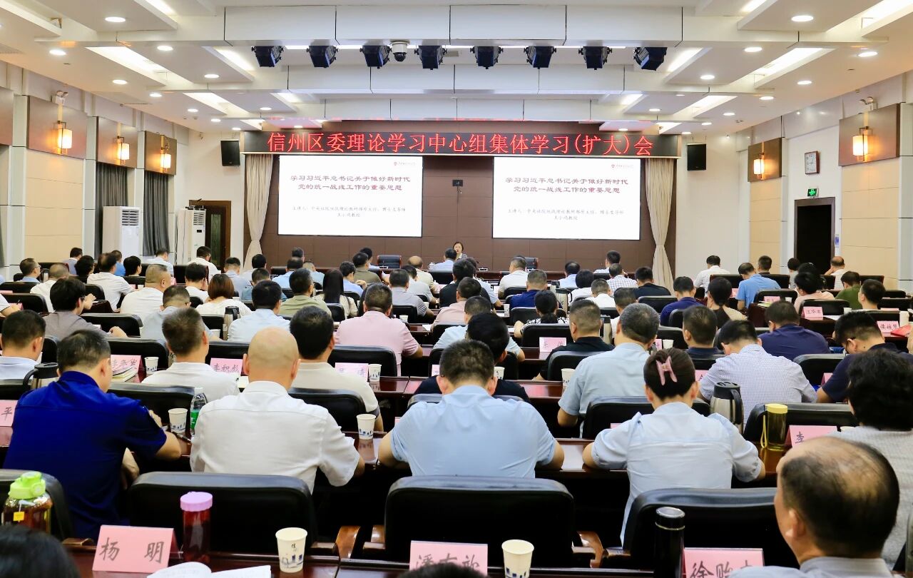 8月29日,區(qū)委理論學(xué)習(xí)中心組集體學(xué)習(xí)(擴大)會召開,特邀中央社會主義學(xué)院統(tǒng)戰(zhàn)理論教研部原主任、教授、博士生導(dǎo)師王小鴻作專題輔導(dǎo)。市人大常委會副主任、區(qū)委書記潘表光,區(qū)委副書記、區(qū)長毛志方,區(qū)人大常委會主任吳武華,區(qū)政協(xié)主席劉山鈺等區(qū)副縣級及以上在家領(lǐng)導(dǎo)參會。