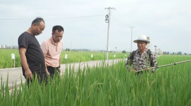 “我種了100畝晚稻,現(xiàn)在技術(shù)員到我這里來指導(dǎo)我,現(xiàn)在是二晚稻抽穗時間,要噴一次葉面肥,還要打一次農(nóng)藥,我心里也踏實了,有技術(shù)員到我這里指導(dǎo),我有信心種好田?!睒坟S鎮(zhèn)種糧大戶胡一太說道。