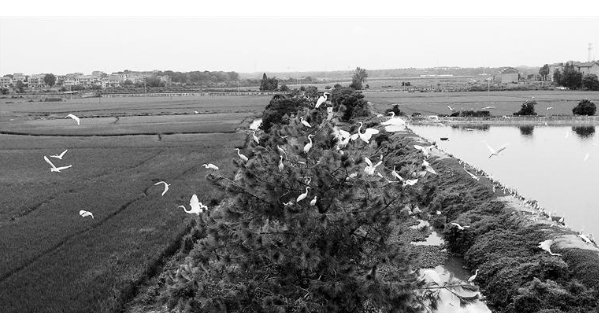 近日,在萬年縣湖云鄉(xiāng)歐村村,萬只白鷺聚集的景象非常壯觀。