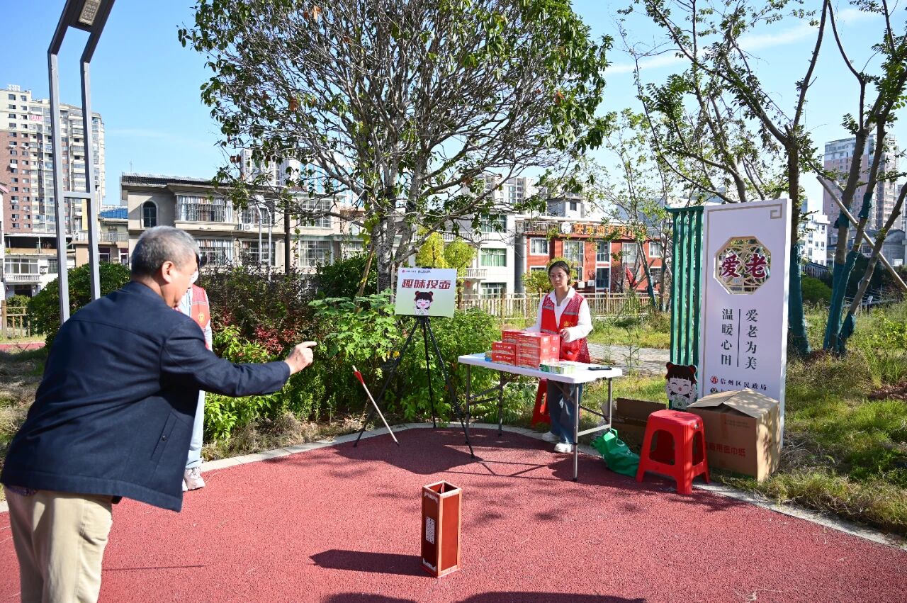 公園內(nèi)暖意融融,10位受邀銀齡志愿者及社區(qū)長(zhǎng)者代表到場(chǎng),主辦方為他們準(zhǔn)備了水杯、經(jīng)絡(luò)拍打器、便攜放大鏡、便攜坐墊等實(shí)用伴手禮?,F(xiàn)場(chǎng),豐富多樣的便民服務(wù)與趣味活動(dòng)同步開展:義診、義剪、養(yǎng)老政策咨詢專區(qū)前排起了隊(duì)伍,工作人員耐心地為老人們提供免費(fèi)檢查、修剪發(fā)型,并普及金融反詐知識(shí)、辦理社??ㄩ_通業(yè)務(wù)。一旁測(cè)完血壓的趙大爺滿意地說:“出來(lái)曬曬太陽(yáng),還能順便測(cè)個(gè)血壓,真是太好了?!爆F(xiàn)場(chǎng)還設(shè)有投壺、套圈、香囊DIY等休閑游戲,吸引眾多長(zhǎng)者參與,在志愿者的悉心引導(dǎo)下,歡聲笑語(yǔ)不斷。