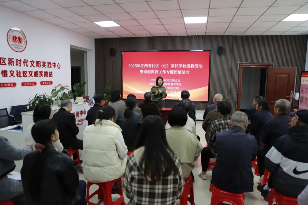 11月13日下午,旭日街道惟義社區(qū)家長學(xué)校家庭教育講座暨家庭教育賦能團輔活動成功舉辦。此次活動由江西省婦女聯(lián)合會主辦、江西省家庭教育學(xué)會承辦,是“省級規(guī)范化社區(qū)家長學(xué)?!彼驼n工作的生動實踐,吸引了眾多社區(qū)居民熱情參與。
