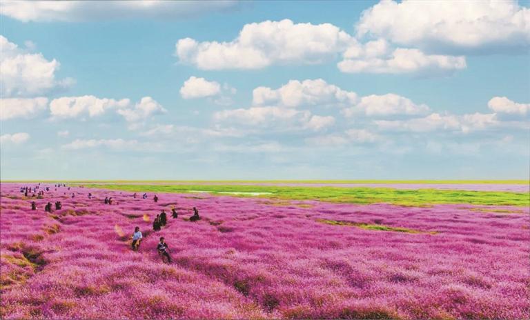 初冬時節(jié),隨著湖水周期性回落,余干縣鄱陽湖畔綿延十余公里的蓼子花也在湖洲濕地上競相綻放,形成壯觀的粉色花帶,吸引眾多游客前來觀賞。 饒軒 攝