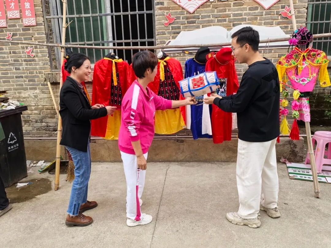宣講會結(jié)束后,宣講隊隊員們化身為耐心的文化講解員。他們手持精美的馬燈道具,向圍坐一堂的老年朋友們細致講解其中的技藝與掌故。許多老人情不自禁地親手觸摸、試戴道具,訴說著往昔看戲、演戲的回憶,臉上洋溢著孩童般的好奇與喜悅。