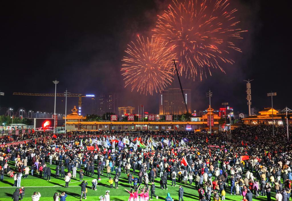 1月2日,人們?cè)诨顒?dòng)現(xiàn)場(chǎng)觀看煙花表演(無人機(jī)照片)。新華社記者 楊文斌 攝