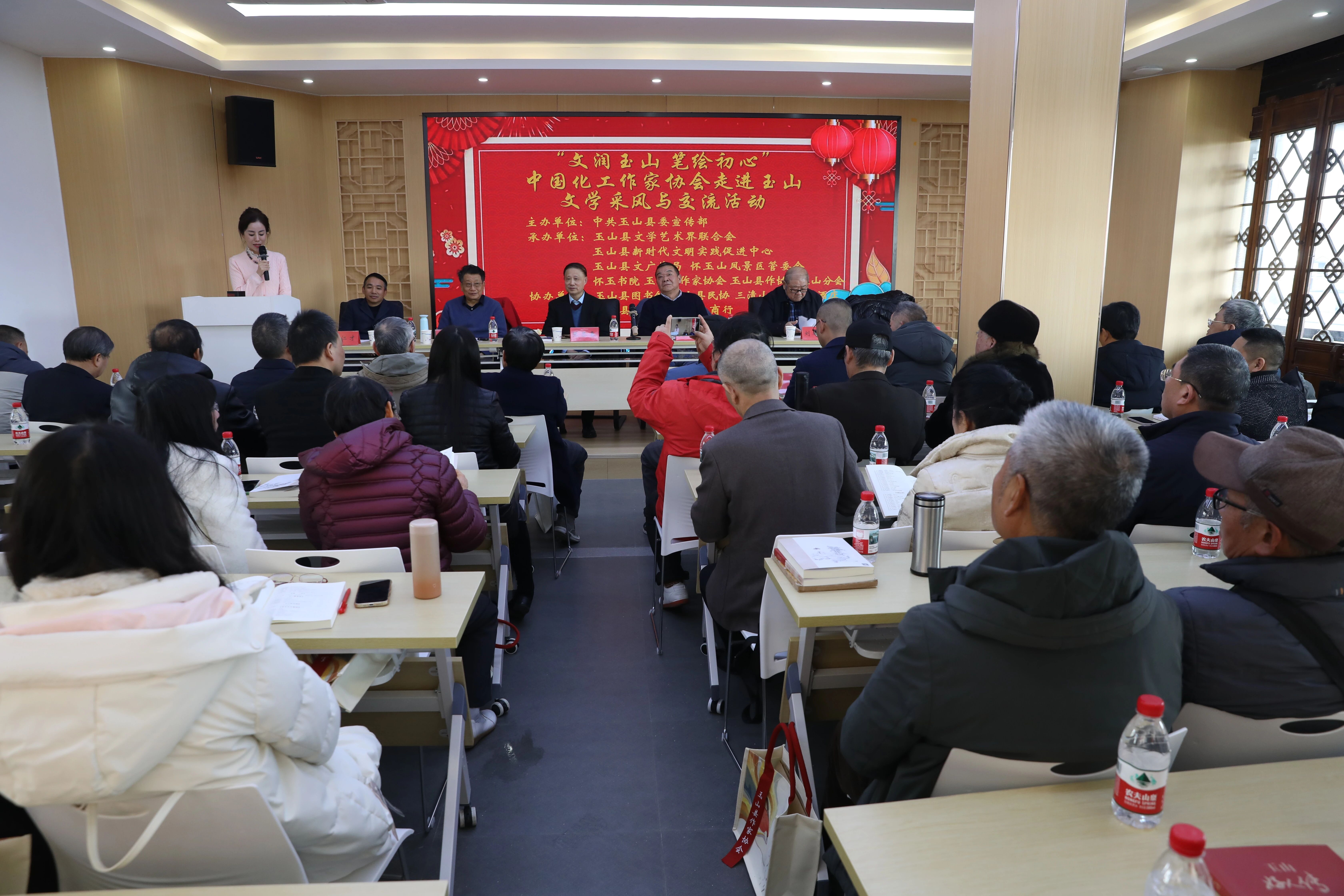 1月8日,“文潤(rùn)玉山·筆繪初心”文學(xué)采風(fēng)交流活動(dòng)舉行。中國(guó)作家協(xié)會(huì)會(huì)員、中國(guó)作家協(xié)會(huì)全委會(huì)委員、中國(guó)化工作家協(xié)會(huì)主席錢(qián)玉貴,中國(guó)作家協(xié)會(huì)會(huì)員、中國(guó)化工作家協(xié)會(huì)執(zhí)行主席兼秘書(shū)長(zhǎng)劉鵬凱,中國(guó)作家協(xié)會(huì)會(huì)員、中國(guó)化工作家協(xié)會(huì)副主席張恭春,中國(guó)作家協(xié)會(huì)會(huì)員、中國(guó)化工作家協(xié)會(huì)副主席兼報(bào)告文學(xué)專委會(huì)主任、中國(guó)紀(jì)實(shí)文學(xué)研究會(huì)副會(huì)長(zhǎng)葉建華出席。