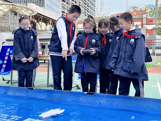 當天,朝陽區(qū)實驗小學以“少年科技夢 創(chuàng)新筑未來”為主題開展系列科技活動,讓學生零距離感受科技的魅力,培養(yǎng)學生的創(chuàng)新精神和實踐能力。記者在現(xiàn)場看到,活動設置了“過山車”展區(qū)、“紙飛機”展區(qū)、“月球車”展區(qū)、“建筑模型”展區(qū)、“太空展”展區(qū)等11個展區(qū),還邀請了朝陽區(qū)實驗小學雄安校區(qū)、朝陽區(qū)實驗小學雄安容西分校的100余名師生參與體驗。
