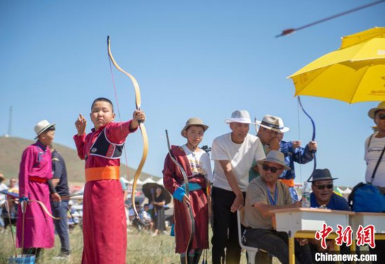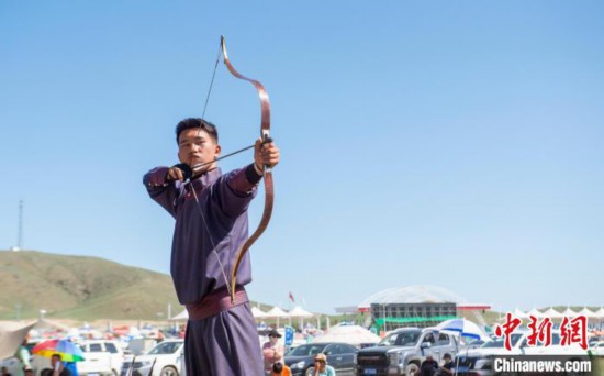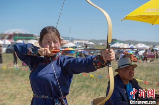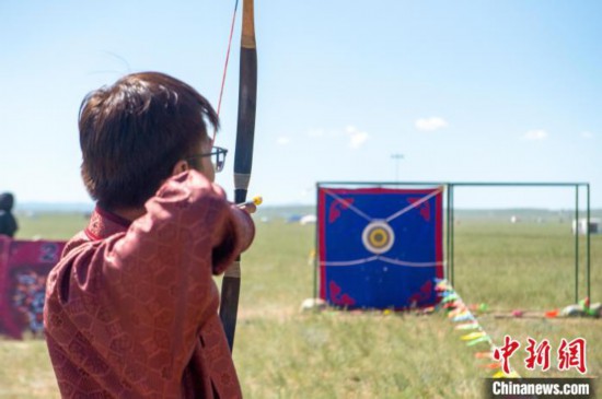 蒙古族傳統(tǒng)射箭是草原那達(dá)慕“男兒三藝”項(xiàng)目之一,是力量和技巧的較量,在內(nèi)蒙古大草原上有著深厚的群眾基礎(chǔ)。 (奧藍(lán))