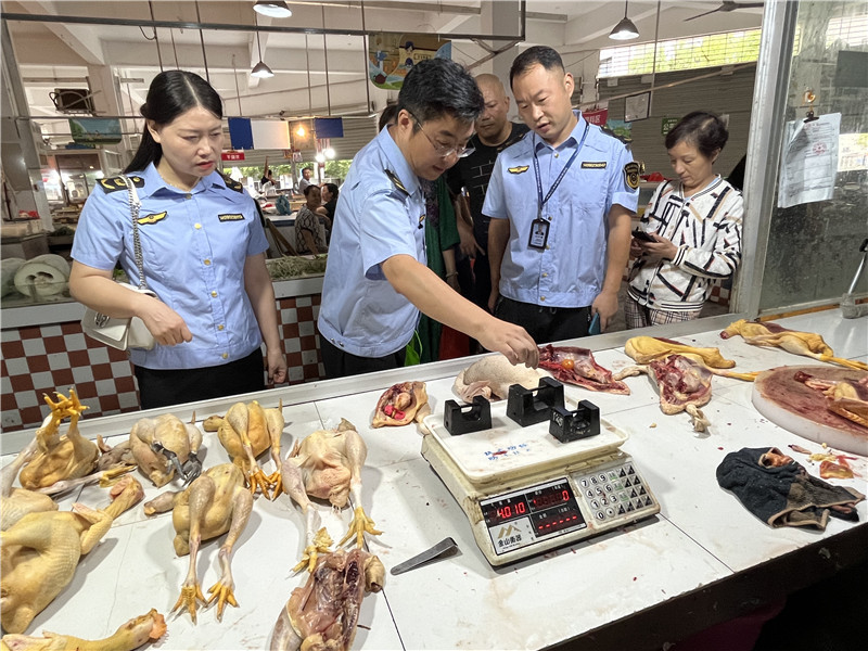 8月30日,信州區(qū)市場監(jiān)督管理局在饒城開展電子計價秤專項檢查,嚴厲打擊利用電子秤作弊的計量違法行為,規(guī)范消費市場計量秩序,營造誠信、放心的市場消費環(huán)境。執(zhí)法人員先后來到嘉百樂超市萬力店、五三集貿市場、八角塘菜場等地的水果、水產、零售店鋪,對電子計價秤使用商戶進行監(jiān)督檢查。 記者 王調翁 攝