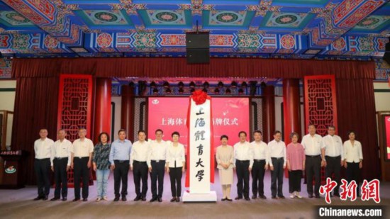 9月16日,上海體育大學(xué)正式揭牌。 上海體育大學(xué)宣傳部攝
