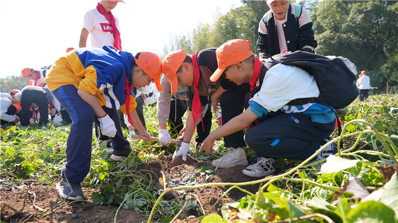 11月1日,在橫峰縣岑山生態(tài)農業(yè)勞動實踐基地,來自上饒市第三中學的1000多名師生在這開展研學活動,大家一起挖紅薯和葛根、打糍粑體驗農耕樂趣。近年來,橫峰通過開辟勞動實踐基地、開設勞動實踐課程,打造寓教于樂的農耕研學游。