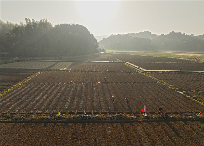 12月5日,在鉛山縣永平鎮(zhèn)老李家萬(wàn)畝蔬菜基地,村民正在播種蔬菜。近年來(lái),鉛山縣采用“龍頭企業(yè)+村集體經(jīng)濟(jì)合作社+農(nóng)戶”的模式,利用閑田種植花椰菜、包菜、大蒜、白菜等時(shí)令蔬菜,努力擴(kuò)大冬種面積,既保障了菜籃子供應(yīng),又幫助農(nóng)民拓展增收致富渠道。