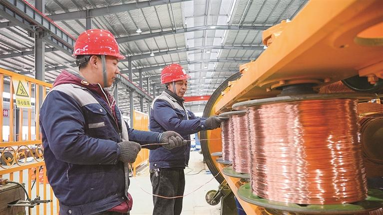 1月25日,位于橫峰經(jīng)開區(qū)的人民線纜有限公司生產(chǎn)車間內(nèi),工人正在鉚足干勁趕制訂單,全力沖刺首季“開門紅”。