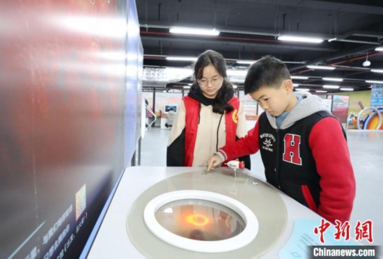 圖為學(xué)子在觀看科普模型。龔普康 攝