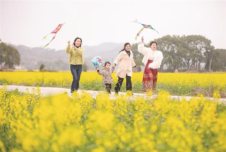 近日,橫峰縣蓮荷鄉(xiāng)楊家村油菜花爛漫盛開,吸引了眾多游客賞花游玩。圖為游客在花海中放紙鳶。薛南 攝