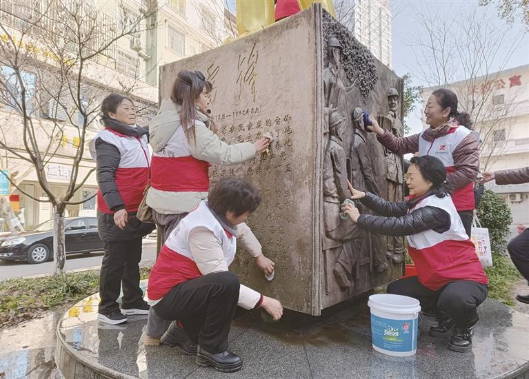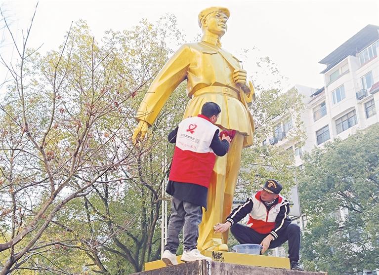清洗雷鋒塑像 弘揚(yáng)雷鋒精神
