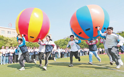 安徽省淮北市第十二中學(xué),高三學(xué)生在參加趣味比賽。