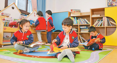 江西省萍鄉(xiāng)市實(shí)驗(yàn)幼兒園的小朋友在閱讀繪本。