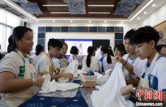 體驗扎染。中新網(wǎng)記者 楊迪 攝