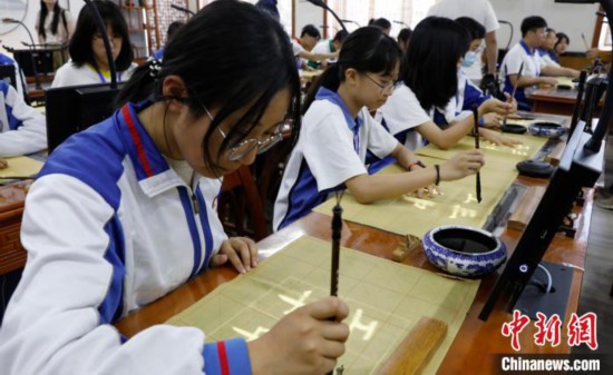 中新網(wǎng)銀川5月7日電 (記者 楊迪)“沒想到這里的書法課充滿科技感,每個桌面上都有電子屏,可以借助投影跟隨老師練習?!?月7日,參訪銀川市第六中學的香港仁濟醫(yī)院第二中學學生王雋睿如是說。