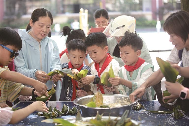 折粽葉、填糯米、纏葉子、系線……5月29日,橫峰縣第一小學邀請家長和師生一起包粽子,共迎“六一”國際兒童節(jié)和端午佳節(jié)。