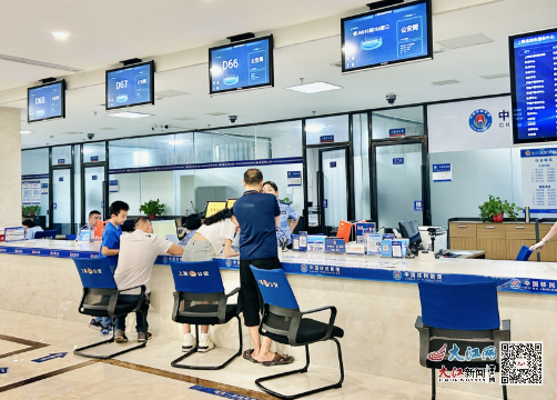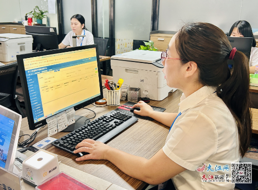 窗口工作人員正在線上給群眾辦理業(yè)務(wù)(周瑩 攝)
