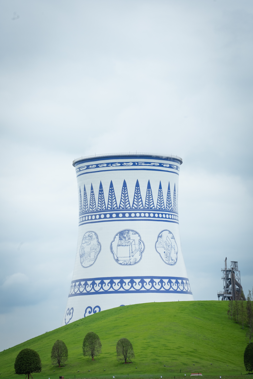 來(lái)到新余市新鋼集團(tuán),煉鋼廠區(qū)附近有多個(gè)公園。其中,青花瓷公園最受關(guān)注,是遠(yuǎn)近聞名的拍照“打卡”地。冷卻塔披著青花瓷彩繪,與藍(lán)天白云交相輝映,塔下不遠(yuǎn)處芳草茵茵、湖水澄澈。