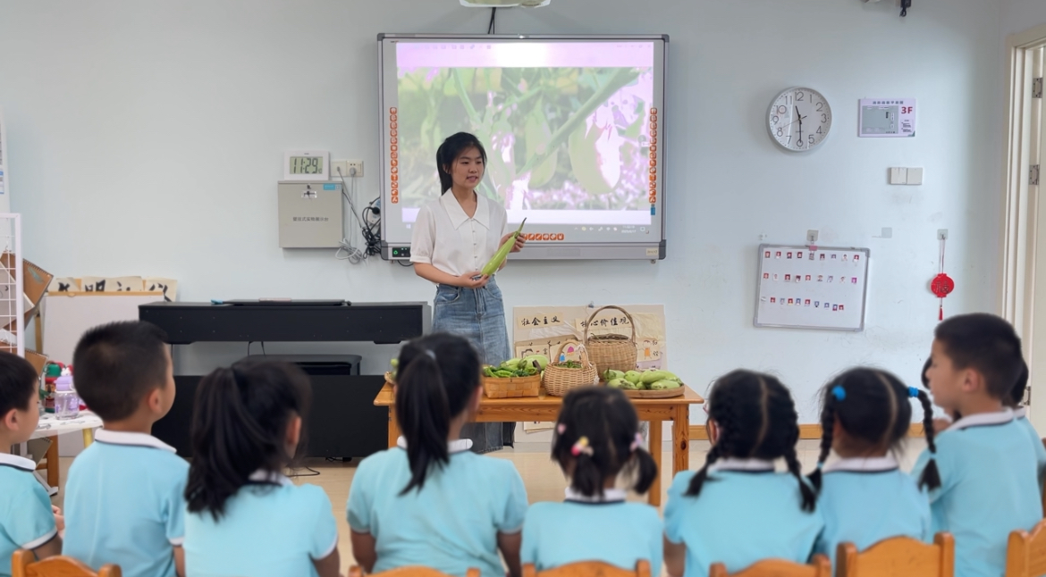 活動(dòng)當(dāng)日,孩子們在老師的帶領(lǐng)下走進(jìn)“一米菜園”,面對孩子們“為什么茄子和辣椒都是綠色的”等童真提問,老師手持實(shí)物耐心講解。通過現(xiàn)場觀察與互動(dòng)問答,孩子們直觀理解了植物生長的基本規(guī)律。在采摘過程中,孩子們小心翼翼地收獲成熟果實(shí),此起彼伏的歡笑聲中,孩子們不僅體驗(yàn)到收獲的喜悅,更在親手采摘的過程中體會(huì)到每一份食物的來之不易。據(jù)帶班老師介紹,為保障活動(dòng)安全性,園方提前進(jìn)行了采摘技巧培訓(xùn)?;氐浇淌液?,老師以剛采摘的綠茄子、綠辣椒為教具,開展了一場生動(dòng)的對比探究課。