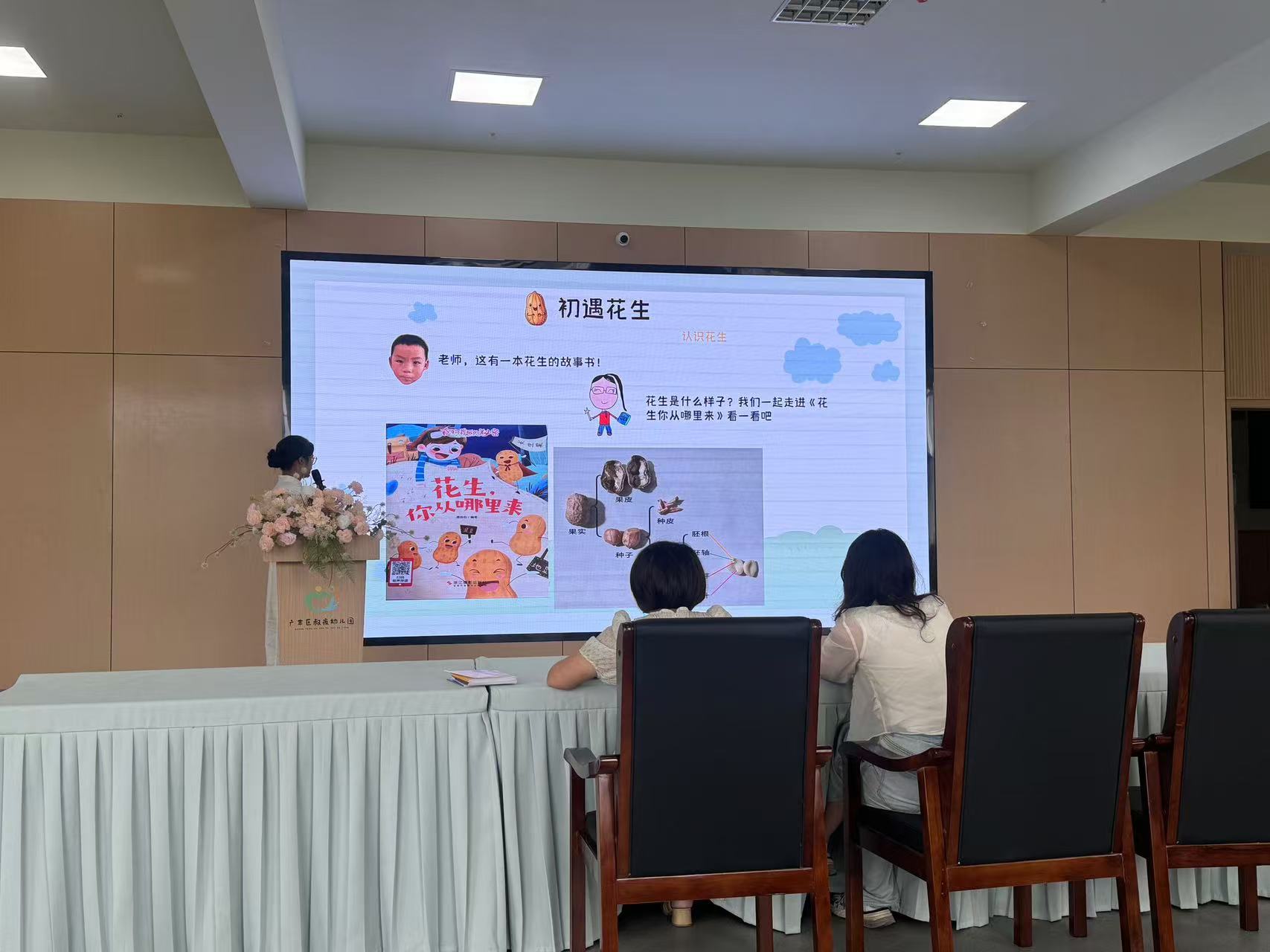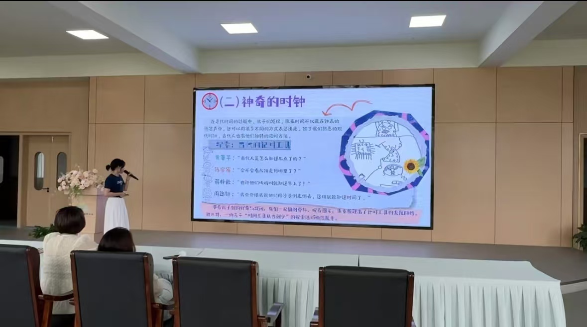 分享環(huán)節(jié)中,各班老師們結(jié)合PPT展示、視頻播放等形式,從課程來源、目標(biāo)設(shè)定、實施過程、成果展示和反思總結(jié)等多個維度,詳細(xì)闡述《好事“花生”》《與時間的對話》《喝水這件事》等課程故事。教師們的分享各具特色、亮點紛呈,充分展現(xiàn)了他們對班本課程的深入理解和積極探索,也體現(xiàn)了以兒童為中心的教育理念。