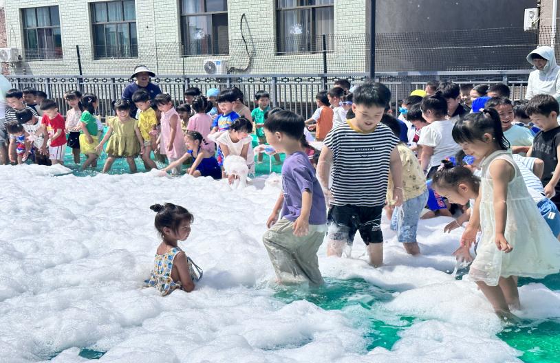 為了讓孩子們感受夏日清涼,體驗(yàn)玩水的樂趣,6月25日,廣豐區(qū)城東幼兒園舉辦“泡沫之夏 水上狂歡”活動(dòng)。