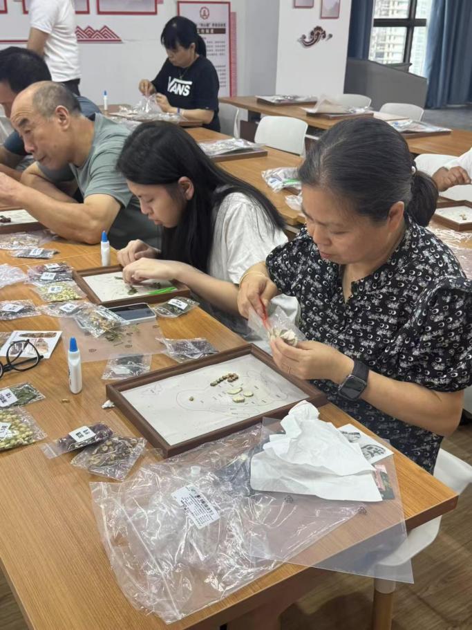 公益課現(xiàn)場,手工老師講解了中草藥香氛畫。現(xiàn)場飄散著淡雅的中草藥清香,職工們圍坐在桌臺前,專注地聆聽著老師講解中草藥香氛畫的歷史淵源與制作技巧。大家興致盎然地調(diào)整著作品構(gòu)圖,有的專注繪制花草紋樣,有的互相交流配色技巧,歡聲笑語不斷。隨著一幅幅融合藥香與藝術(shù)的作品逐漸成型,現(xiàn)場洋溢著成就感和文化傳承的儀式感,既像一場別開生面的手作課堂,又似一次沉浸式的傳統(tǒng)文化療愈之旅。