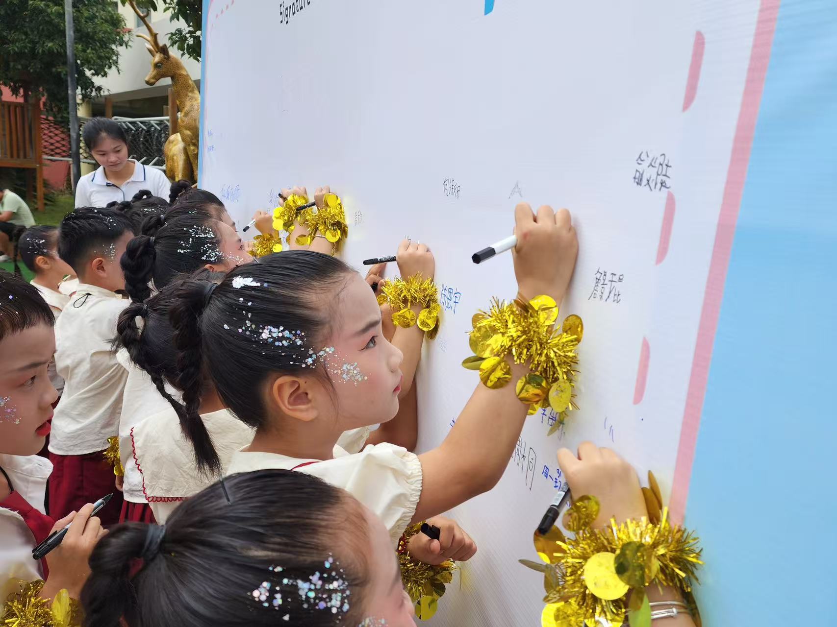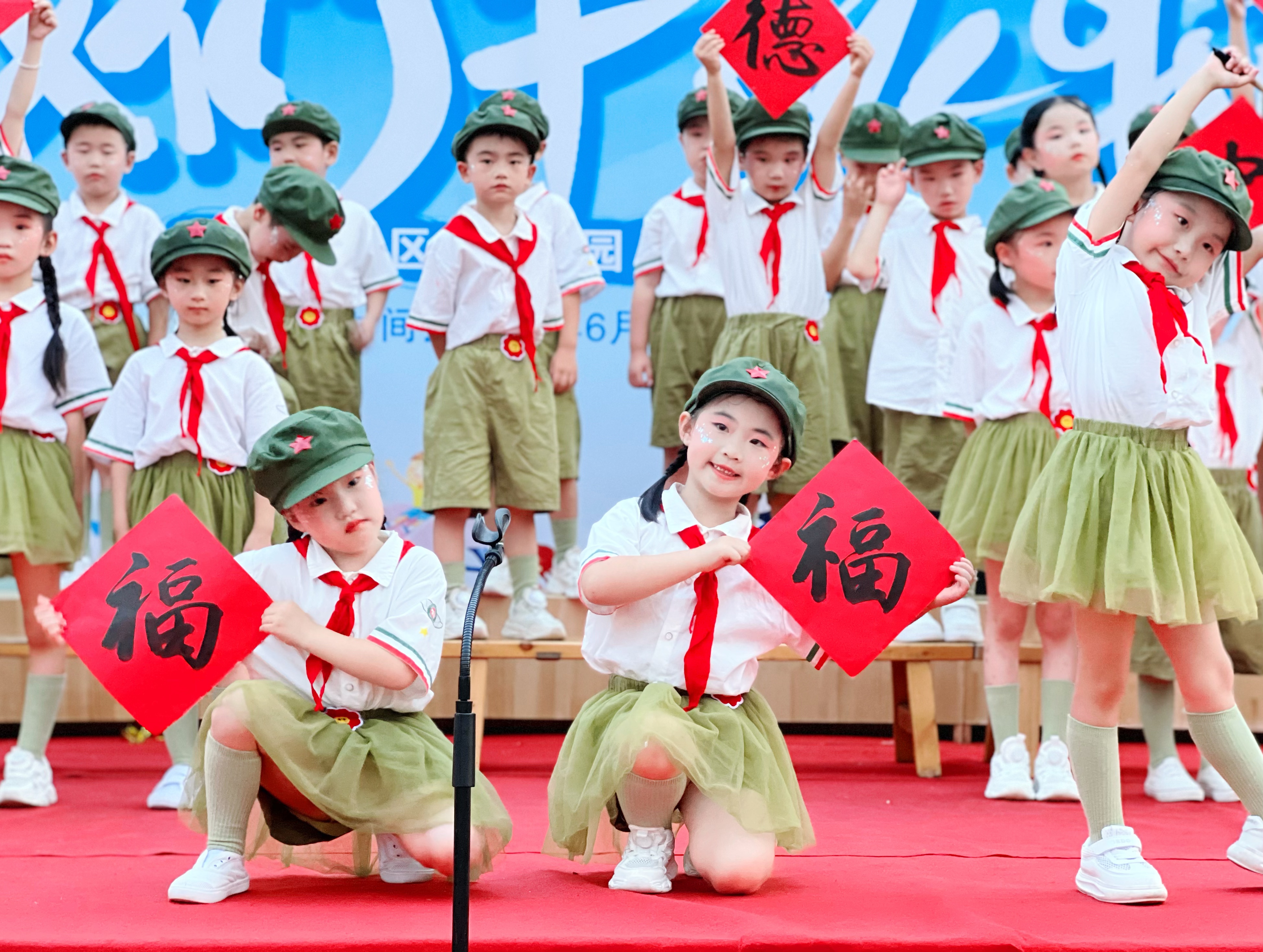教師以朗誦《離別幼時(shí)光》傾訴不舍,隨后紅歌表演與才藝展示輪番上演。孩子們身著紅軍服,唱響《紅星閃閃》《歌唱祖國(guó)》等經(jīng)典曲目,揮舞小國(guó)旗抒發(fā)愛國(guó)情;小提琴獨(dú)奏婉轉(zhuǎn)悠揚(yáng),傣族舞靈動(dòng)柔美,街舞活力四射,多元才藝與紅色旋律交織,點(diǎn)燃全場(chǎng)熱情?;顒?dòng)尾聲,全體教師登上舞臺(tái),孩子們整齊端坐,用顫抖卻堅(jiān)定的聲音朗誦《畢業(yè)詩(shī)》。