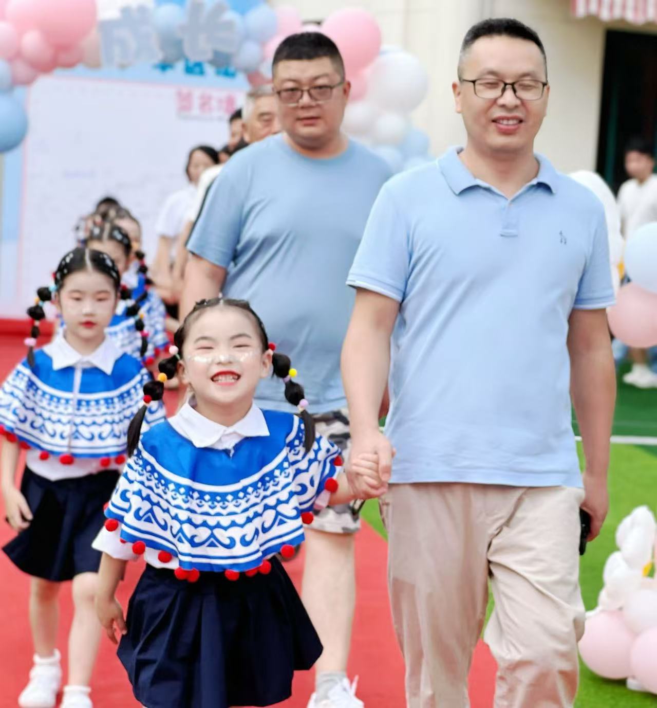 活動(dòng)伊始,孩子們?cè)诤灻麎ι相嵵貙懴旅?,踏著紅毯穿過“成長(zhǎng)之門”,隨后,園長(zhǎng)致辭為典禮拉開序幕,幼兒代表分享成長(zhǎng)趣事,家長(zhǎng)代表真摯感恩園所培育,教師代表含淚訴說不舍與祝福,溫情氛圍瞬間彌漫全場(chǎng)。