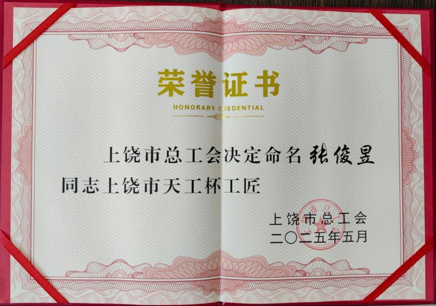 這份對技藝的執(zhí)著追求和對卓越的不懈努力,最終在更高的舞臺上綻放光彩。在2024年上饒市“天工杯”銅行業(yè)職工職業(yè)技能競賽中,張俊昱憑借其爐火純青的技藝、沉著穩(wěn)定的發(fā)揮和追求極致的匠心,在強手如林的競爭中脫穎而出,一舉奪得了拉絲穿模穿線項目的桂冠!這一沉甸甸的榮譽,不僅是對他高超專業(yè)技能的權(quán)威認證,更是對他數(shù)十年如一日堅守崗位、精益求精的職業(yè)素養(yǎng)和深厚工匠精神的最高褒獎與充分肯定。