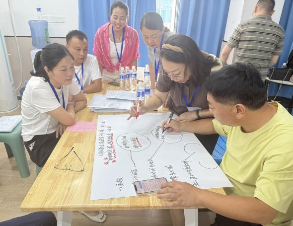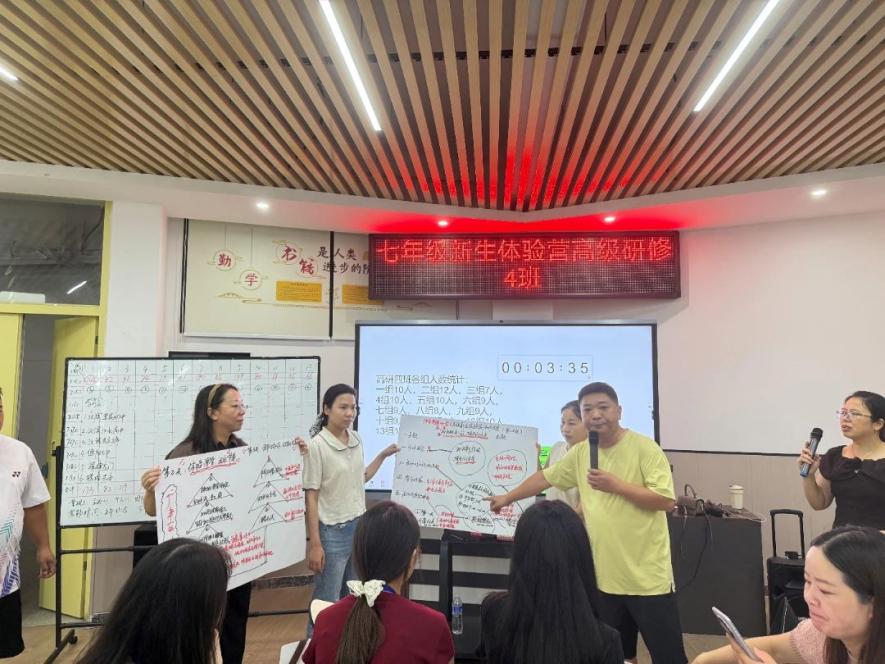 研學(xué)的最終目的是學(xué)以致用。學(xué)習(xí)尾聲,廣豐區(qū)研學(xué)團(tuán)隊(duì)按校分組,結(jié)合幾天來的所學(xué)所思及各自學(xué)校的校情、學(xué)情展開頭腦風(fēng)暴,群策群力,制定出具有校本特色的“新生體驗(yàn)營”初步策劃方案,力求將學(xué)到的經(jīng)驗(yàn)真正運(yùn)用到實(shí)際教學(xué)中。