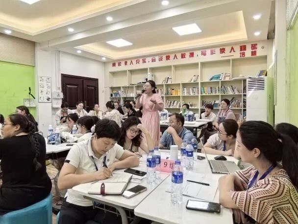 課堂觀察引發(fā)思考后,涼水井學(xué)校的導(dǎo)師們通過主題報(bào)告與互動(dòng)研討,系統(tǒng)闡述活動(dòng)設(shè)計(jì)的育人目標(biāo)與教育理念精髓。廣豐區(qū)研學(xué)團(tuán)隊(duì)積極提問探討,與導(dǎo)師深度對(duì)話,在思想碰撞中深化對(duì)“新生體驗(yàn)營”模式的理解。