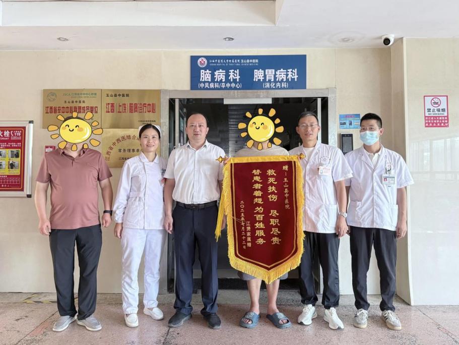 近日,玉山縣中醫(yī)院腦病科上演了溫馨、暖人的一幕,一名患者的家屬懷著激動(dòng)的心情將一面鮮紅的錦旗送到腦病科,表達(dá)對(duì)腦病科醫(yī)護(hù)團(tuán)隊(duì)全力救治、精心護(hù)理的由衷感謝。