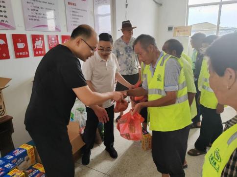 慰問(wèn)組率先抵達(dá)“巴西菇”種植基地,將防暑藥品、冰紅茶、方便面、西瓜及礦泉水等慰問(wèn)品送到辛勤勞作的“菇農(nóng)”手中。隨后,慰問(wèn)組來(lái)到“愛(ài)心驛站”,向維護(hù)城鎮(zhèn)潔凈的環(huán)衛(wèi)工人送上同樣豐富的清涼物資。