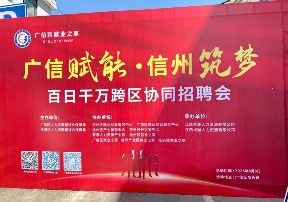 為扎實推進(jìn)穩(wěn)就業(yè)工作,8月8日,上饒市信州區(qū)與廣信區(qū)攜手聯(lián)動,依托皂頭鎮(zhèn)饒南大市場趕集日人員密集的天然優(yōu)勢,聯(lián)合開展跨區(qū)協(xié)同招聘會。此次活動以“廣信賦能、信州筑夢”為主題,由兩地人社、就創(chuàng)中心、園區(qū)等多部門共同主辦,旨在搭建高效就業(yè)橋梁,激活區(qū)域人力資源活力。