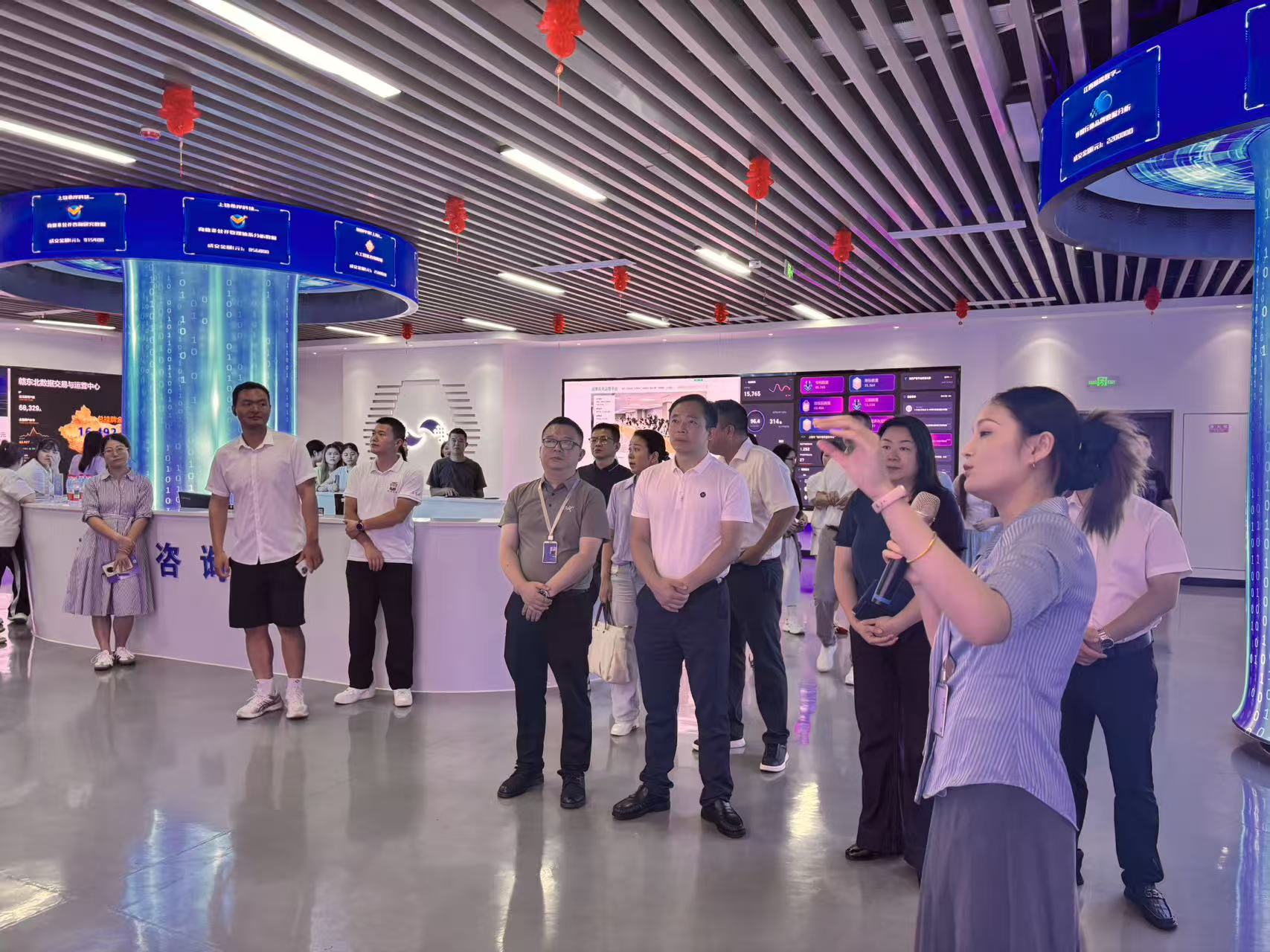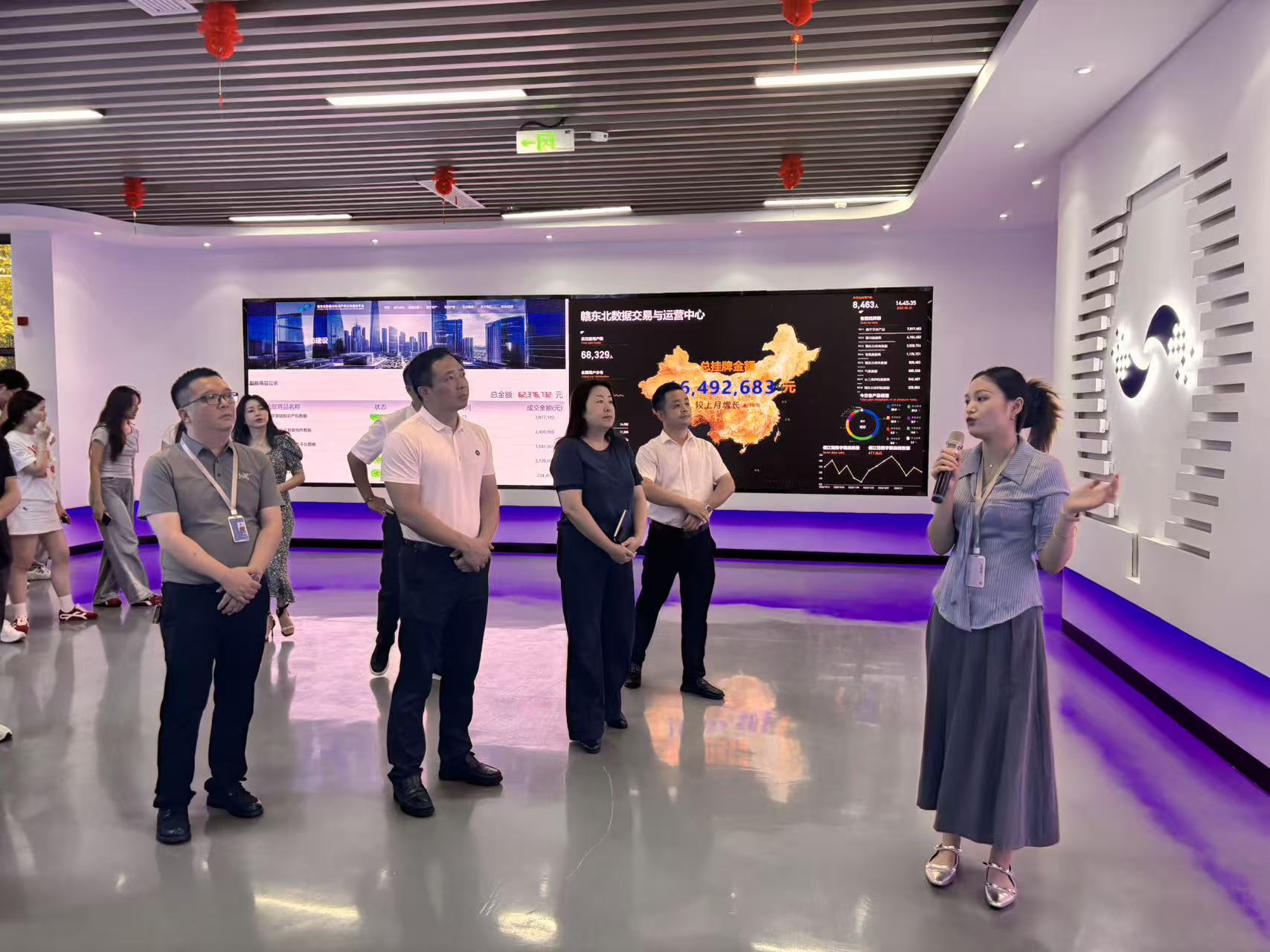 會前,參會人員集體參觀了贛東北數(shù)據(jù)與知識產(chǎn)權(quán)交易中心。通過實地觀摩和詳細(xì)講解,與會企業(yè)代表深入了解了數(shù)據(jù)要素市場化配置、數(shù)據(jù)資產(chǎn)融資、企業(yè)數(shù)字化轉(zhuǎn)型等前沿實踐,對數(shù)字經(jīng)濟時代下的發(fā)展機遇有了更直觀的認(rèn)識。
