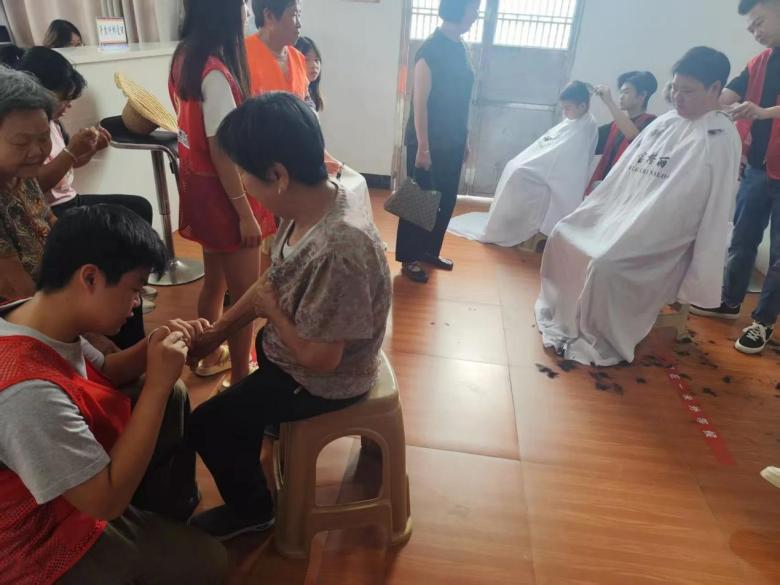 活動現場暖意融融,志愿者們分工協作,忙碌的身影穿梭在老人中間。理發(fā)區(qū)里,志愿者手持剪刀,一邊細致地為老人修剪頭發(fā),一邊輕聲詢問 “這樣的長度您滿意嗎?”“要不要再修得短一點?” 輕柔的話語搭配嫻熟的手藝,讓老人們在輕松的氛圍中換了新發(fā)型,鏡中的自己精神抖擻,笑容也格外燦爛。