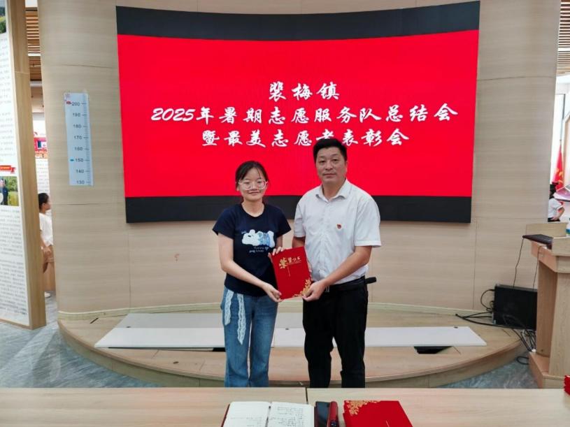 會(huì)議最后,9名志愿者獲頒裴梅鎮(zhèn)暑期“最美志愿者”榮譽(yù)證書。紅色封皮映照著青春面龐,兩個(gè)月的汗水凝聚成莊重表彰。這份榮譽(yù)不僅是對(duì)過(guò)往工作的肯定,更是青春力量與鄉(xiāng)村振興雙向奔赴的見證。