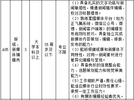 上饒市傳媒集團(tuán)有限責(zé)任公司2025年公開招聘崗位一覽表