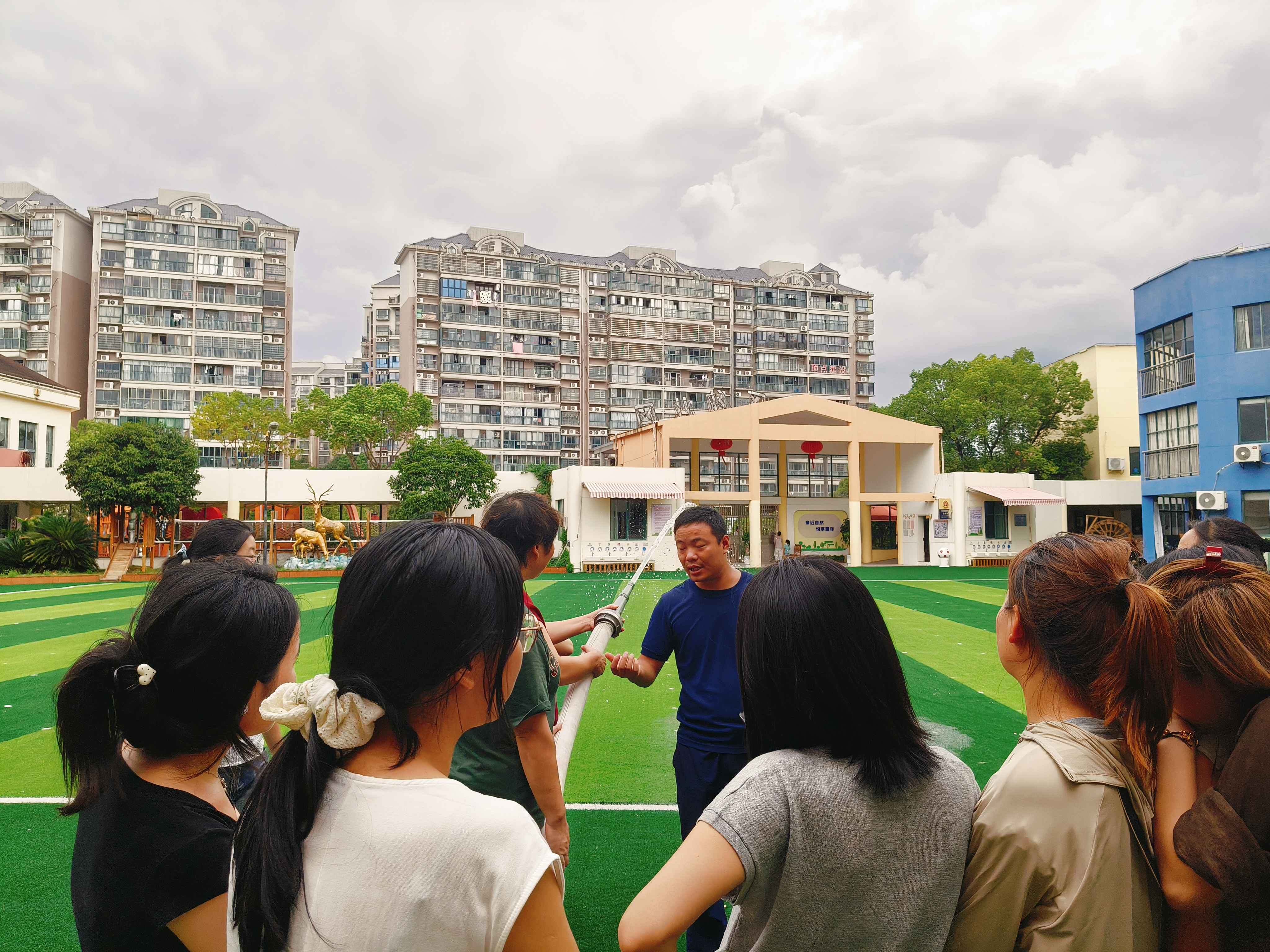 針對幼兒園固定消防設(shè)施,教官詳細講解消防栓的組成、操作流程及安全注意事項,并示范水帶連接、閥門開啟、火源壓制等步驟。教職工兩人一組協(xié)作演練,快速完成操作,切身感受消防設(shè)施的實戰(zhàn)效能。