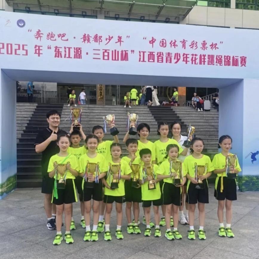 2025年江西省青少年花樣跳繩錦標賽于9月19日-21日在贛州市安遠縣舉行,全省共有70多支參賽隊伍1000多名運動員參賽,由廣豐區(qū)永豐小學牽頭選送的22名運動員參加比賽,斬獲14金18銀11銅,并榮獲團體總分第一名。
