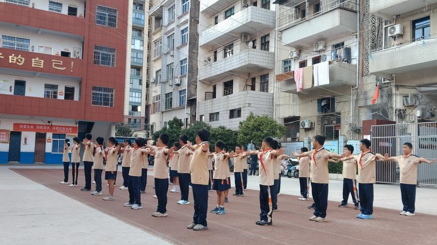 隨著活動音樂響起,余干縣第三小學(xué)操場上瞬間化作活力海洋。跑操環(huán)節(jié),學(xué)子們步伐整齊、口號嘹亮,展現(xiàn)出昂揚的精神風(fēng)貌;廣播體操時間,同學(xué)們昂首挺胸、動作標(biāo)準(zhǔn),手臂伸展如青松挺拔,踢腿跳躍似雛鷹振翅;三字經(jīng)操與弟子規(guī)操環(huán)節(jié),傳統(tǒng)文化與體育律動巧妙融合,孩子們在舒展的動作中感悟經(jīng)典魅力;最后的放松操則讓身心在舒緩節(jié)奏中得到調(diào)節(jié)。整場活動動靜結(jié)合、張弛有度,整齊劃一的隊列宛如流動的青春畫卷,充分彰顯出該校學(xué)子良好的身體素質(zhì)與嚴(yán)明的紀(jì)律意識。