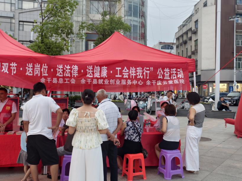 9月29日,在國慶、中秋雙節(jié)來臨之際,余干縣總工會聯(lián)合余干縣就業(yè)創(chuàng)業(yè)服務(wù)中心、余干慶云堂醫(yī)院,于琵琶湖工會驛站旁西廣場舉辦“送崗位?送法律?送健康?工會伴我行”公益活動?;顒右浴芭姆?wù)大禮包”形式,為職工群眾送上節(jié)日祝福,吸引近200名職工參與,現(xiàn)場氛圍熱烈而溫馨。