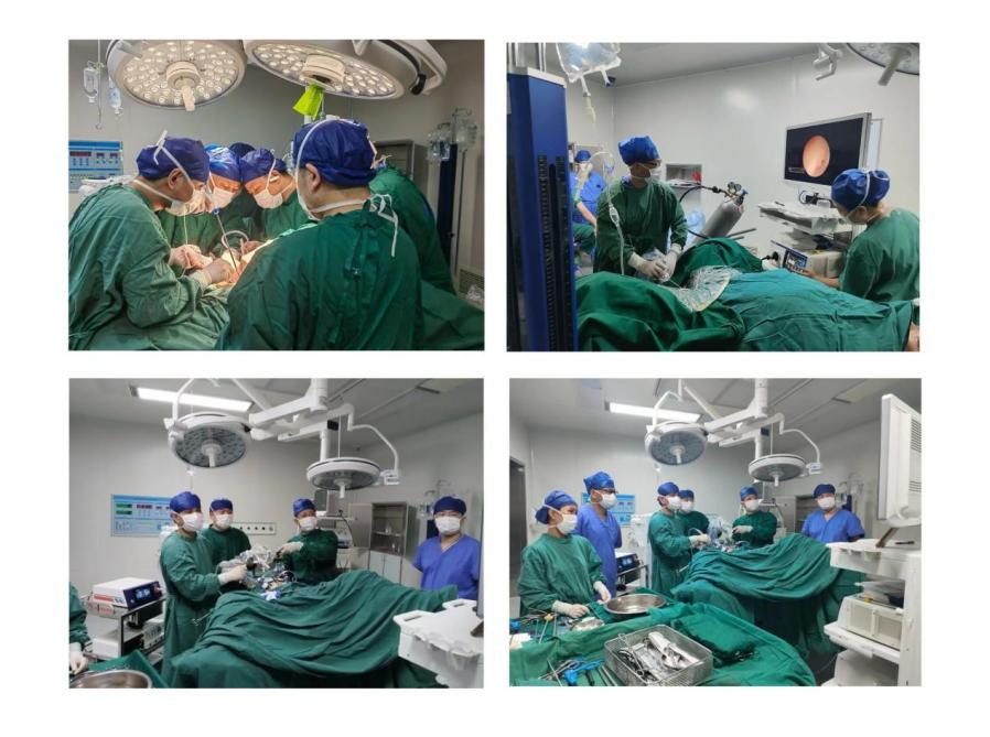 面對這一“棘手”病例,醫(yī)院外科學(xué)科帶頭人迅速集結(jié)泌尿外科、普外科、腫瘤科、重癥醫(yī)學(xué)科、手術(shù)麻醉科等多學(xué)科,組建MDT(多學(xué)科協(xié)作診療)團隊,聯(lián)合楊吉勇博士,對患者進行全方面會診、評估,制定個體化最優(yōu)手術(shù)方案。并對患者實施:經(jīng)尿道輸尿管鏡下左輸尿管結(jié)石鈥激光碎石取石術(shù)+左輸尿管支架置入術(shù)+腹腔鏡輔助乙狀結(jié)腸癌根治術(shù)+膀胱部分切除術(shù)(成功保留左側(cè)輸尿管開口)+橫結(jié)腸造口還納術(shù)。手術(shù)臺上各學(xué)科專家各施所長、密切配合,歷時6小時,成功完成此項高難度手術(shù)。目前患者已從ICU轉(zhuǎn)入普通病房進行后續(xù)治療。