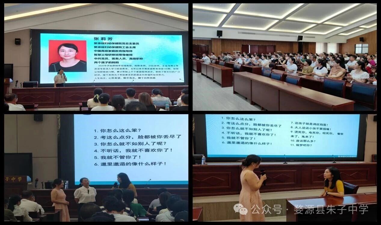 為進(jìn)一步加強(qiáng)家校社共育,促進(jìn)學(xué)生健康成長(zhǎng),近日,婺源縣朱子中學(xué)邀請(qǐng)中國(guó)高級(jí)家庭教育指導(dǎo)師、婺源縣婦幼保健院工會(huì)主席張莉芳來(lái)校開展家庭教育講座。旨在通過(guò)專家指導(dǎo),搭建協(xié)同育人橋梁,幫助家長(zhǎng)破解家庭教育困惑。學(xué)校相關(guān)領(lǐng)導(dǎo)、政教處負(fù)責(zé)人和近200名九年級(jí)學(xué)生家長(zhǎng)參加了本次活動(dòng)。
